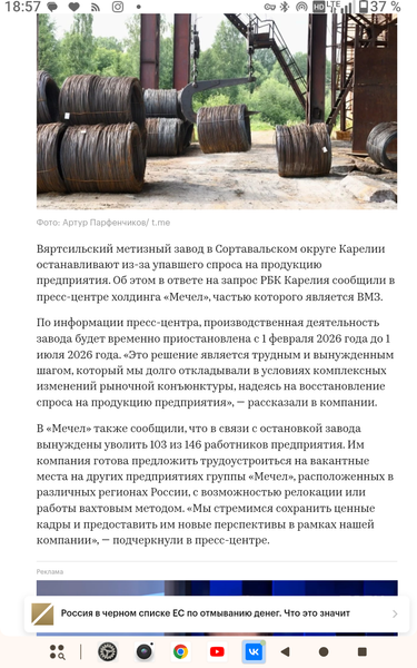 Кому суждено утонуть тот не сгорит. ![]() А так как я много читаю то практически зарядку на планшет и не выключаю. Что касается закрытия в Карелии завода... Ну дыть - капитализЬма в России... Что то закрывается что то открывается... Владельцы баблишко считать научились, где и что выгодно.... Ну а люди... Ну дыть, повторюсь - КАПИТАЛИЗЬМА.... Кто то сможет "" перестроиться"" ... Кто то впадёт в депрессию и сопьётся. Это жизнь... Социализм закончился в 1991 году... И нет того общества названного "" общество социалистического оптимизма""... Когда утром просыпаешься и реально знал что будет завтра и строил планы.... По всему миру такая же хрень капиталистическая... Но это я просто разговор поддержал... Вон и в Кузнечном карьер снизил добычу гранитного щебня... Часть людей пока в отпуска закинули...